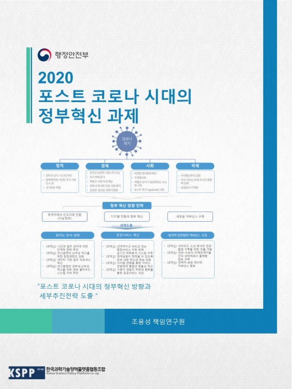 2020 포스트(post) 코로나 시대의 정부혁신 과제 연구 관련링크 페이지 정보 작성일20-08-10 15:57 조회6,880회 본문 포스트 코로나 시대의 행정환경 및 정부역할 변화 전망과 관련 변화를 선도하기 위한 중앙정부의 혁신전략 및 과제 도출 이전글 다음글 목록