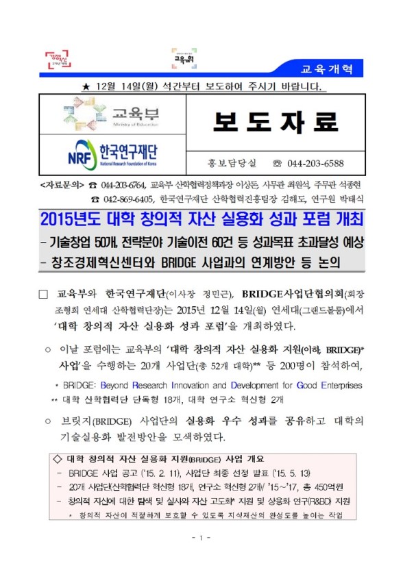 ○ 참가대상 : BRIDGE사업단 관계자, 교육부, 연구재단(약200여명)